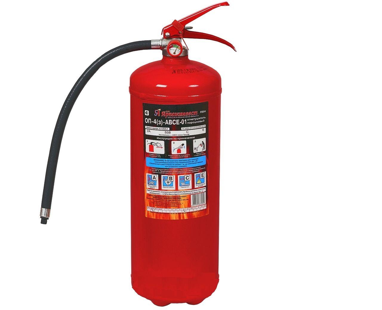 Порошковые огнетушители ОП-4(з) АВСЕ предназначены для защиты помещений производственного и хозяйственного назначения, применения на автомобильном, железнодорожном, речном транспорте и в бытовых условиях в качестве первичных средств тушения пожаров классов А (твердых горючих веществ), В (жидких горючих веществ), С (газообразных горючих веществ) и электроустановок, находящихся под напряжением до 1000 В.